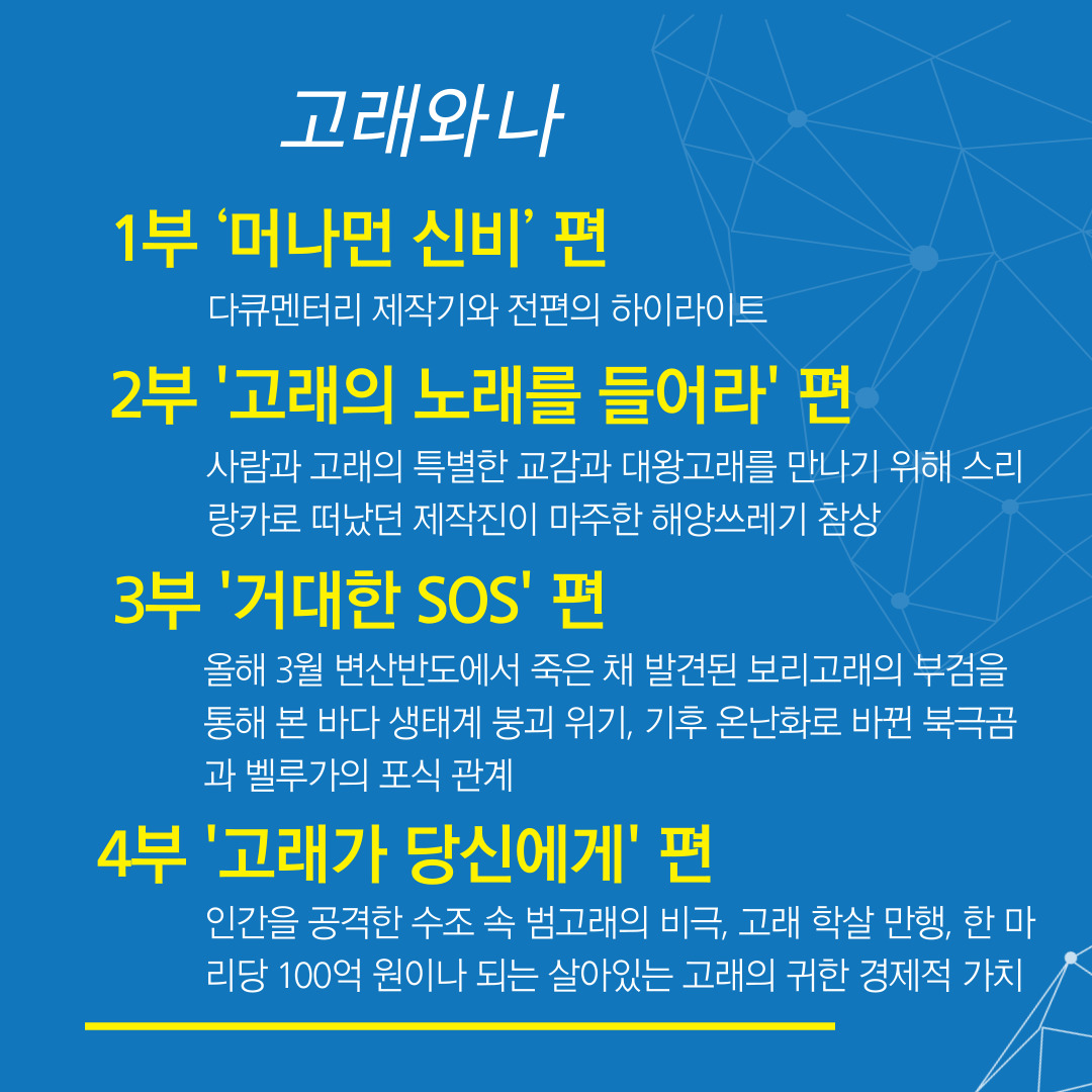 이러한 고래의 신비를 4부에 걸쳐 보여줍니다.