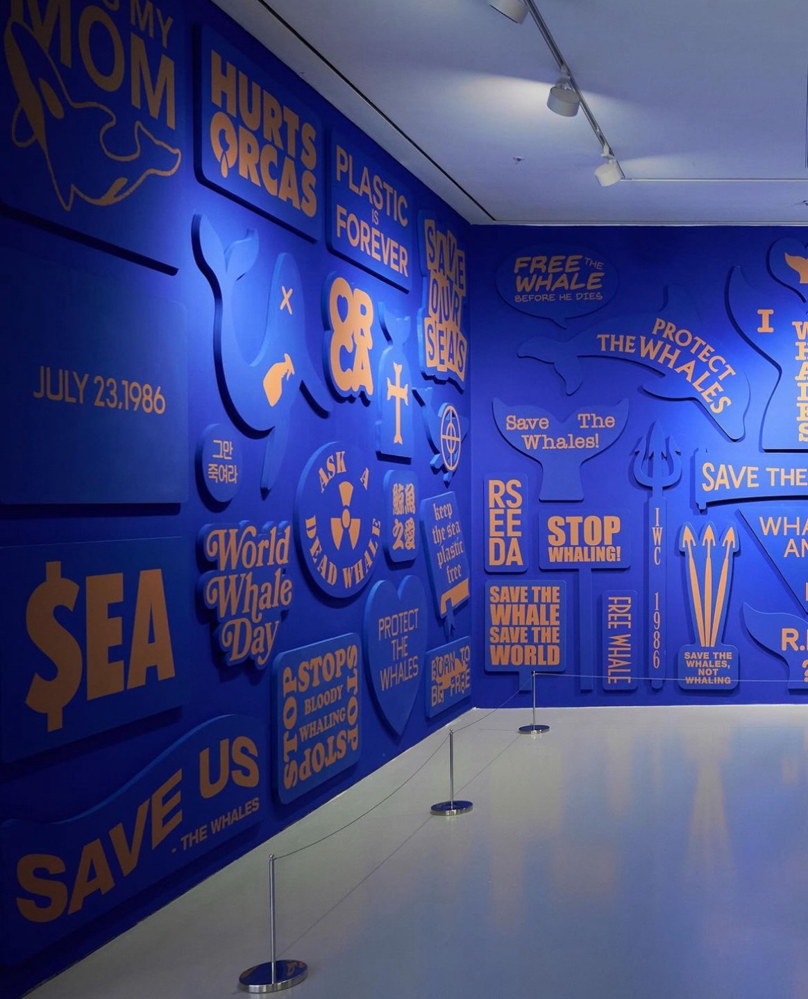 단순할 수 있었던 고래 영상 전시를 미술 전시 못지않은 규모와 재질과 품격으로 잘 조성했습니다.