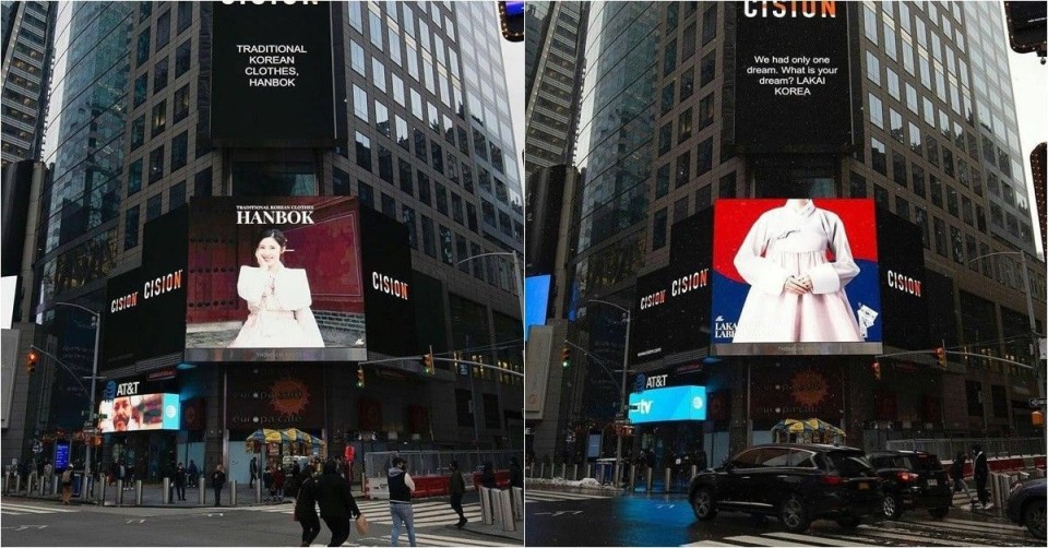 중국의 한복 동북공정에 맞서 뉴욕 타임스퀘어에 한복 광고를 낸 것으로 유명한 라카이코리아.