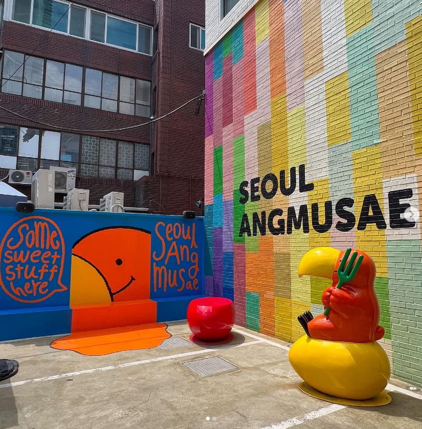 • 성수의 베이커리 카페 '서울앵무새'- 까페 외관에 화려한 포토존을 마련해 대기하는 동안 지루하지 않게 사진을 찍고 업로드하는 체험 제공.